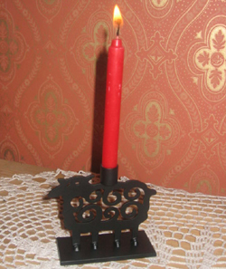 Ein Kerzenständer aus massivem Eisen, schwarz beschichtet. Die kleinen Weihnachtsbaumkerzen passen hervorragend. Der Leuchter ist ca. 10 cm hoch und steht durch sein hohes Eigengewicht sehr sicher.